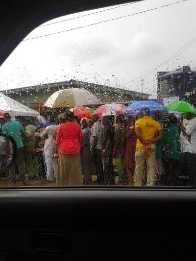 Its raining heavily in some areas but that hasn't stopped patriotic Lagosians from standing in queues and voting. More photos after the cut...